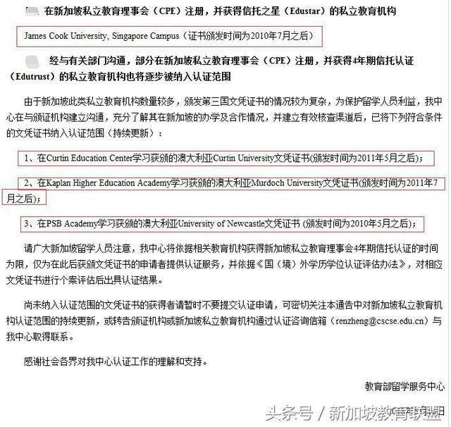 首先我们来看一下新加坡私立大学获中国教育部认证的消息