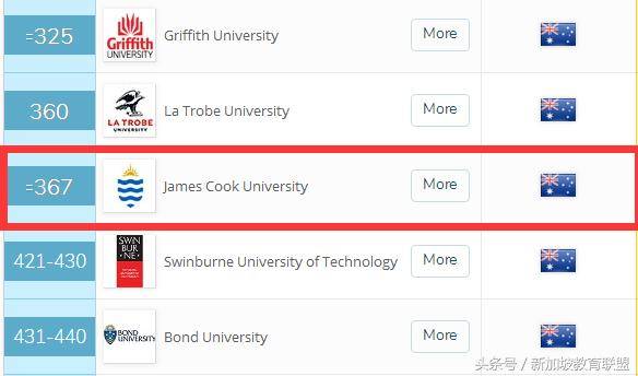 从排名中,我们可以看出,新加坡PSB学院的合作大学澳大利亚纽卡斯尔大学在世界大学排名中跃居第224位,科廷大学位居世界大学排名第262位,詹姆斯库克大学位列367名。