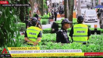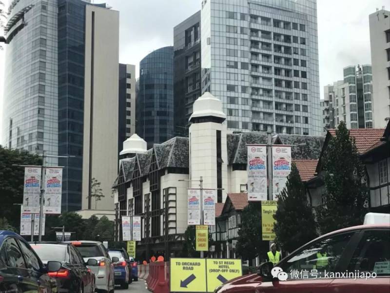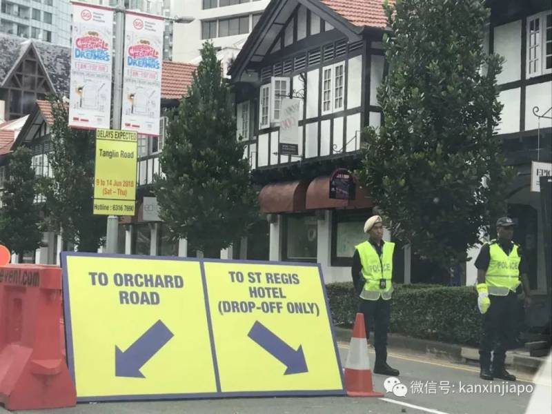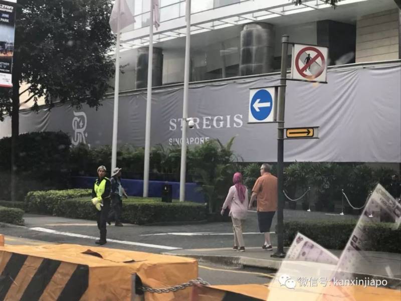 今天早上开始,乌节路一带已经是有警察严密把守了,通往金正恩下榻的瑞吉酒店和特朗普下榻的香格里拉酒店一带的路段已经封闭: