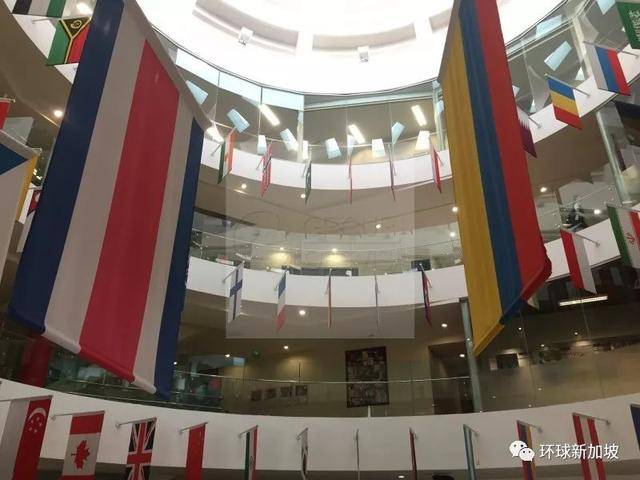 学校大厅~很多国旗,充分表达了学校文化和学生的多元化~