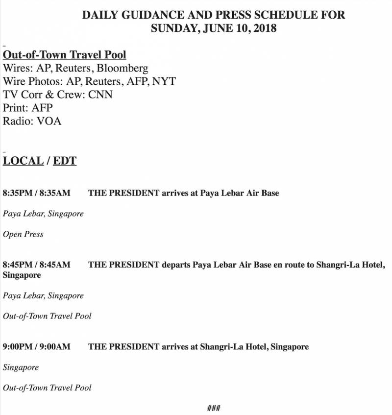 他的车队将在晚上9点,驶抵特朗普下榻的香格里拉酒店。