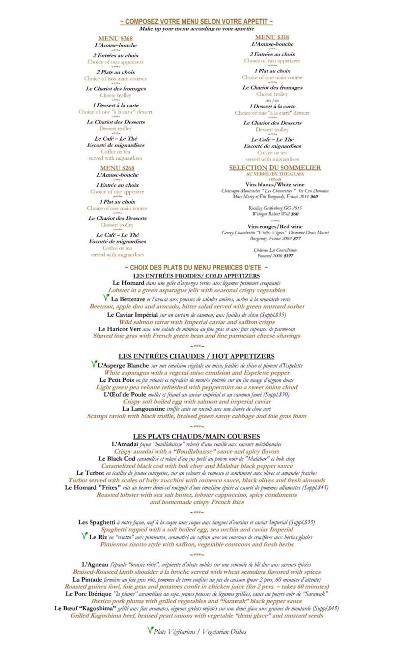 由候布雄亲自设计的菜单价格则为S$498,菜色都是根据当季食材特别准备的。