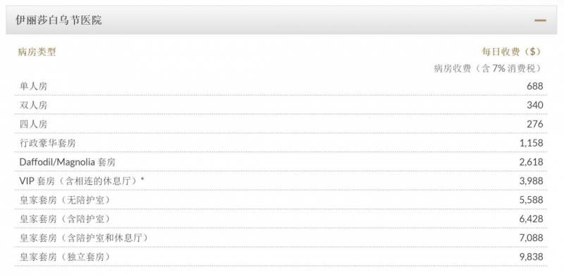 中国AIA提供的高端医疗保险,也包括新加坡的伊丽莎白医院。