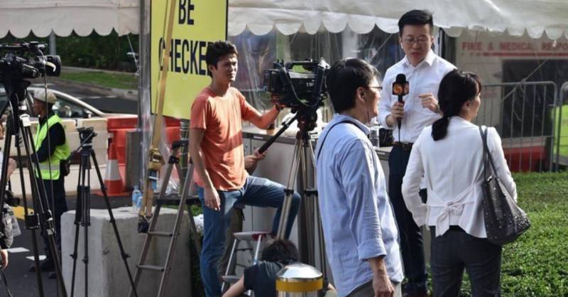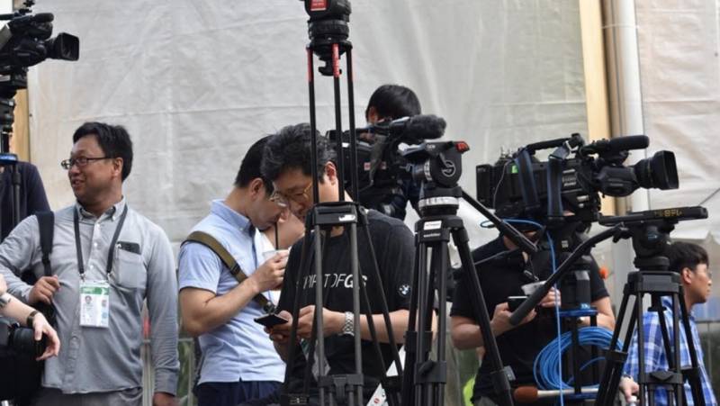 金正恩下榻的瑞吉酒店门口早就守好了各国记者的“长枪短炮”