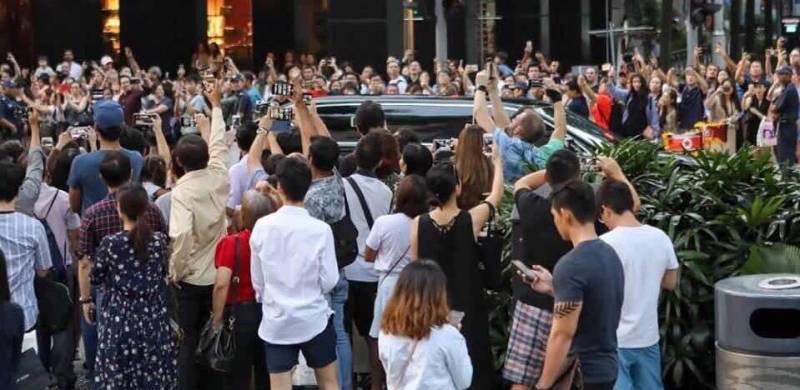 虽然这次没有保安围住专车做人墙,但是早在车队抵达瑞吉酒店之前,