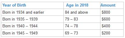财政部今天发布公告说,今年满84岁或以上的人可获得800元;79岁至83岁的年长者可获得600元;74岁到78岁则可获得400元;而69岁至73岁可得200元。这些津贴是永久性的。