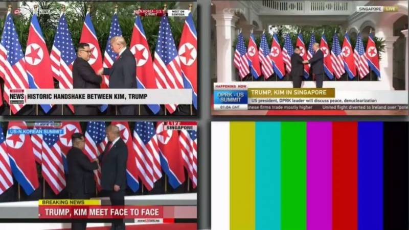 相信今天一早,很多人都守在了电视机/电脑旁,见证这一历史时刻!But,我们对比了韩国、中国、日本和朝鲜四国电视截图,发现,呃......