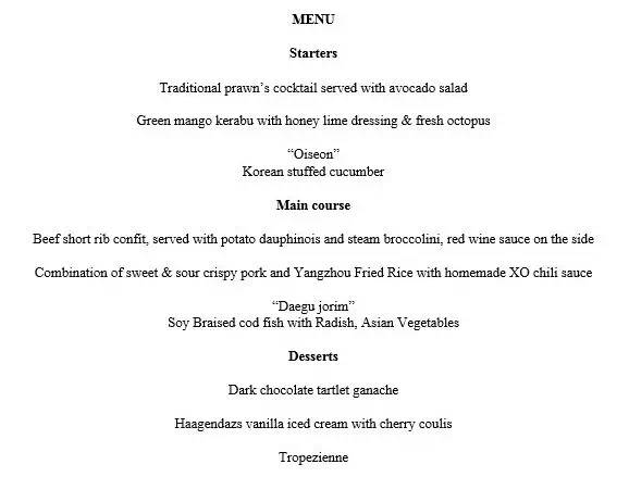 林益民也表示,开胃菜有韩国腌黄瓜和章鱼,看似韩国菜的比重较大,