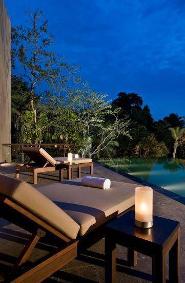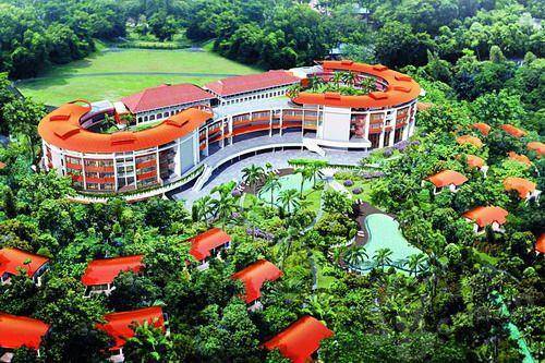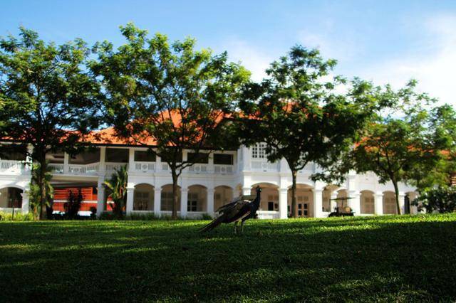 酒店由三十英亩热带公园环绕,集现代和古典于一体,其独具匠心的现代风格建筑及单体别墅、美丽海滩与1880年代的历史老建筑——曾经的英军驻新加坡俱乐部浑然融为一体。