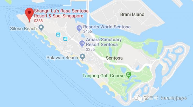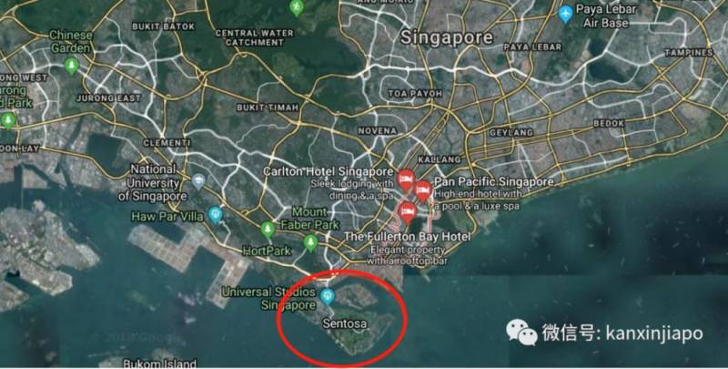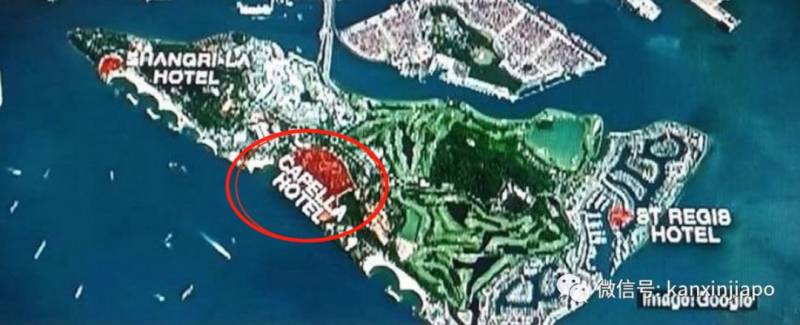 好,那下一步就是找酒店了~举行特金会的嘉佩乐酒店(Capella Hotel)在这个岛上!快在图上标出来~