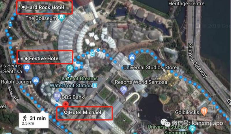 等等,还有金正恩住的瑞吉酒店没找到......瑞吉太低调了,在这张图里找起来有点辛苦。话说,Google应该提高精度了,这么大的酒店都不在图上标出来!口亨~
