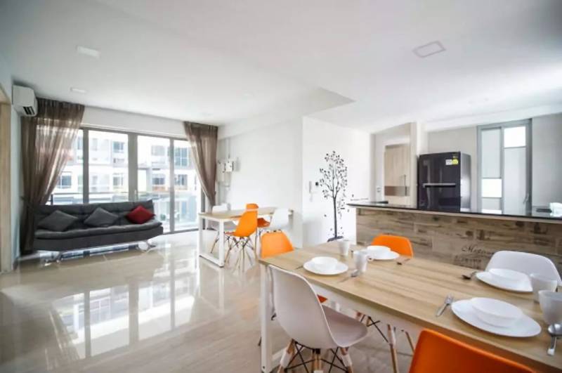 共享的客厅里,冰箱、灶台、沙发、桌椅都配齐了~到了周末,舍友们一起吃顿火锅,再玩几局狼人杀,简直完美!当然,快考试的时候,大家可以一起学习,从此刷夜不孤单~