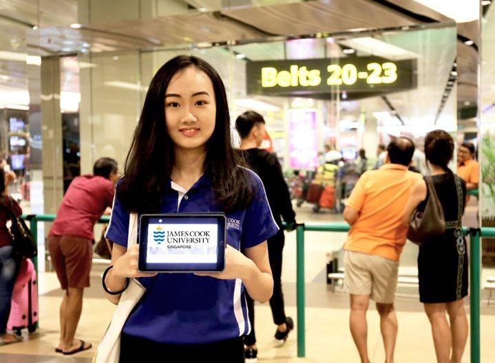 眼尖的朋友看小姐姐举的牌子已经get到了,没错!这间对学生百般宠爱的大学,就是新加坡很有名的詹姆斯库克大学新加坡校区~