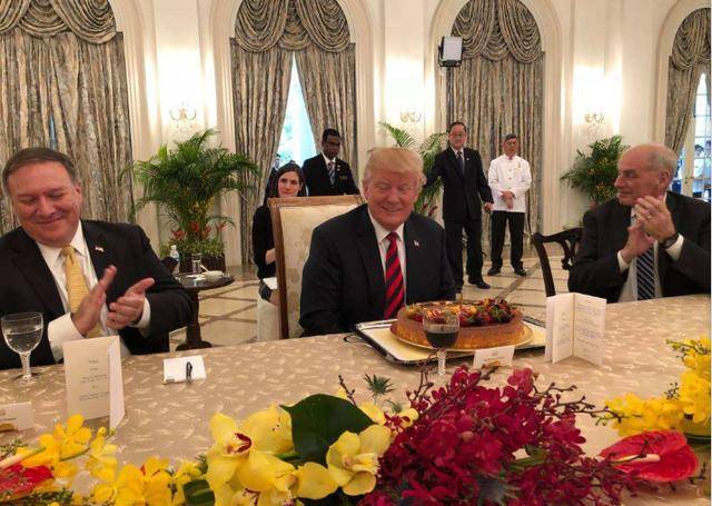 而在6月11日中午,新加坡方面还给川普送上惊喜——提前为其祝寿——并送上精美的生日蛋糕。尽管在加拿大的经历并不愉快,但新加坡在一定程度上抚慰了美国总统的童心。川普很显然受到感动,赞赏新加坡的热心招待,并表示已经记住了新加坡的专业精神和深厚友谊。甚至在刚刚抵达狮城时,川普就迫不及待在社交媒体上发文:这里的空气中都充满着兴奋!