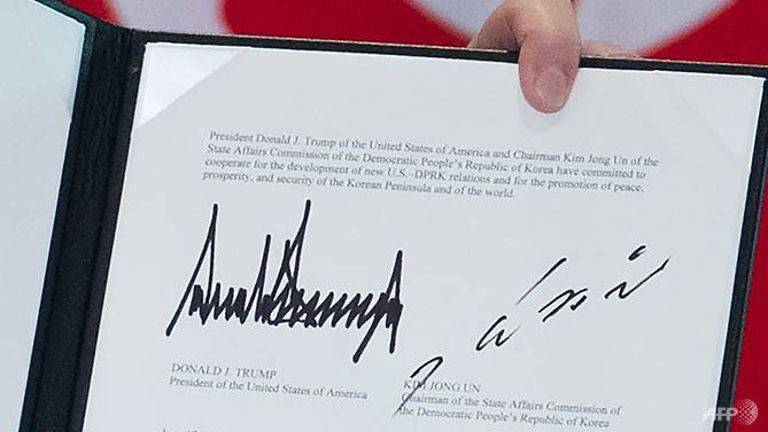 昨日,特朗普和金正恩在嘉佩乐举行的美朝峰会结束后,公布了二人签署的一份联合声明。