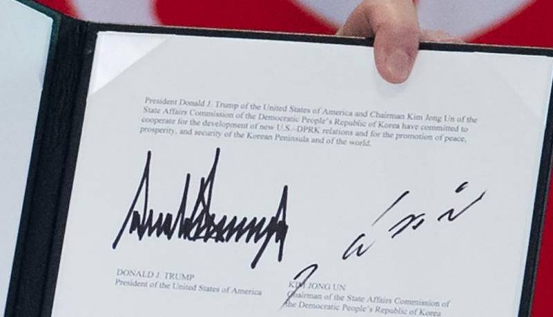 双方确信建立新的美朝关系将为朝鲜半岛和全世界带来和平与繁荣,并意识到建立互信能够促进朝鲜半岛去核化进程,在此之下特朗普总统和金正恩委员长做出了声明:
