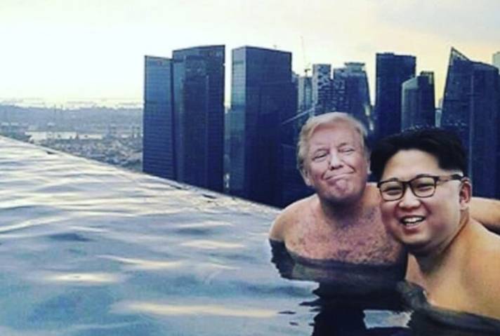 有的网友PS了一张特朗普金正恩到此一游的照片