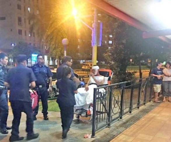 被殴打过后的安哥满头满脸都是血,在路上走路都歪歪斜斜,结果后来实在不行,走到小贩中心的时候就晕倒了。目前已在清醒的状态下被送进了医院治疗。