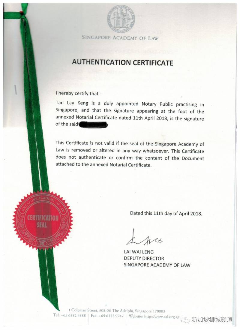 备注:公证和认证的手续是逐级办理的,认证是相对于公证而言的,认证是对文件上的签字和印章的属性性进行辨识。中国大使馆认证只接受已被新加坡律师学会认证过的公证书,办理好中国使馆认证后,同一人证明即可在中国境内使用了,同国内所出具的文书一致具有法律效力,可重复使用。