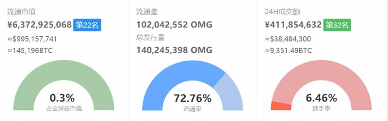 OmiseGO市场整体表现稳定。该项目于2017年6月启动,根据coinmarketcap数据显示,其平台通证OMG单价为62.45CNY,市值基本稳定在TOP25以内。