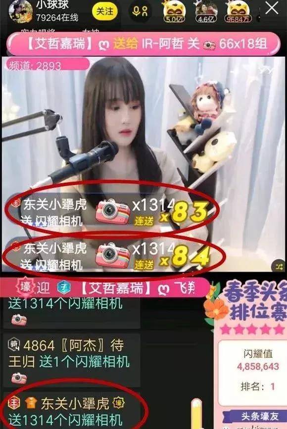 东关小犟虎在球球的直播间一掷千金,最多的一次刷了70多万的礼物,这个时间点刚好和他视频中观看球球歌曲MV的时间对得上。