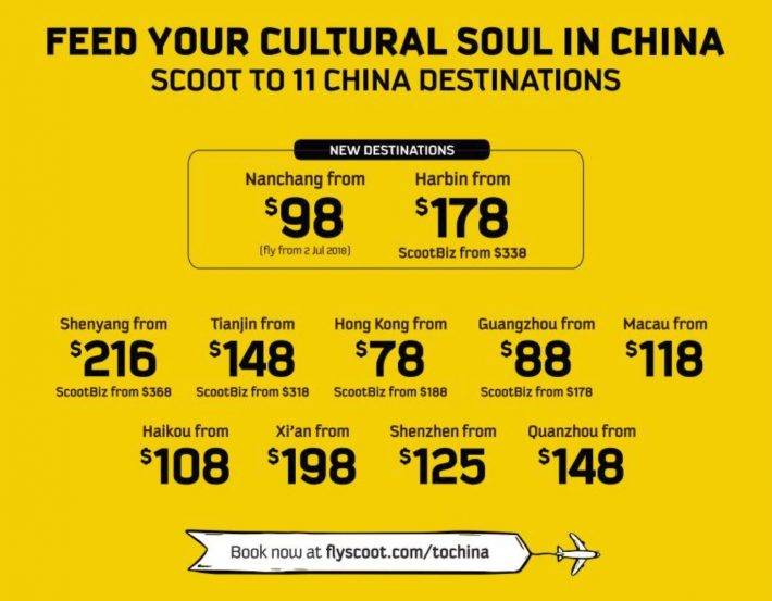 4.Scoot飞往中国航线特价,更多目的地更多好价
