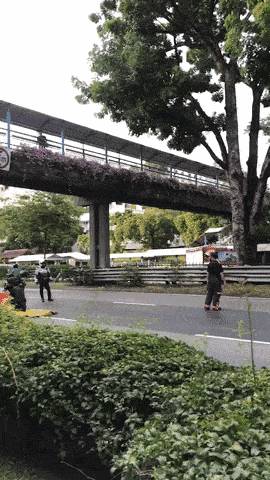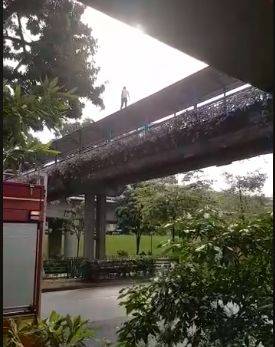 今天(6月14)有一名女子在下午5点爬上义顺2道的一个天桥顶,引起骚动。