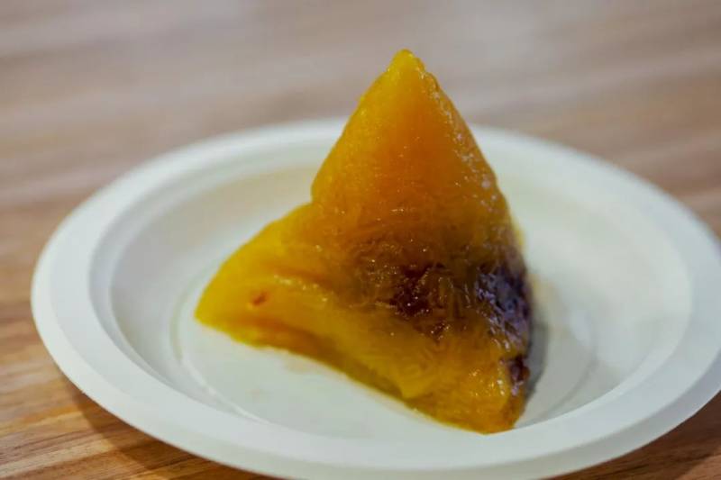 一看到这种黄色,就知道是颗碱水粽。小妹对碱水粽不是很感冒,但是为了北方是甜粽的吃货们,我还是决定试一试。