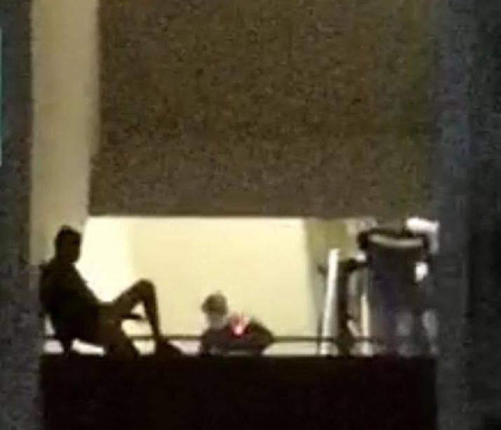 男子危坐13楼梯间栏杆,仅左手抓着栏杆,右手不断挥动,稍不留神就会跌下。