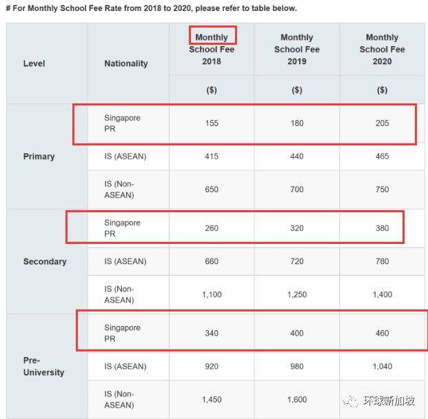 新加坡公民享受免费义务教育,而新加坡永久居民缴纳的学费仅为国际生的1/3甚至1/4,费用如下: