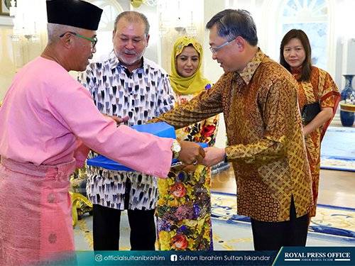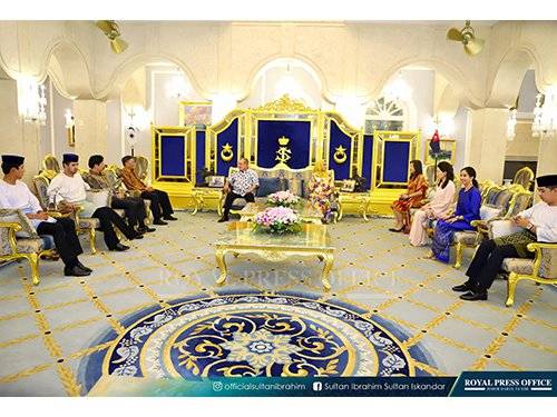 随后,两名部长也受邀与陛下及柔佛王室成员共进午餐,并在离开前互赠纪念品。