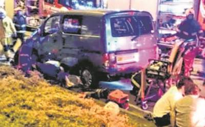 丹戎巴葛6月15日 凌晨严重车祸,一对相信是母女的路人过斑马线时,不知何故被货车撞,37岁女儿受困货车车底,左臂骨折,伤势严重。