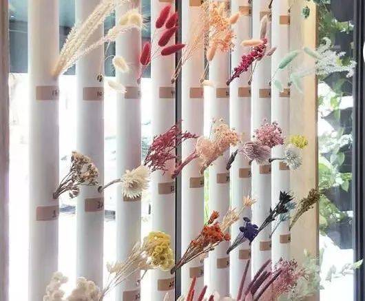 在这里,有一整面墙的干燥永生花材给你挑选,据说有45种。默认的体验中,可以选择4种花材,容器是用悬挂玻璃球来装永生花景观,如果想要玻璃罩式的,只需要加10新币喔~