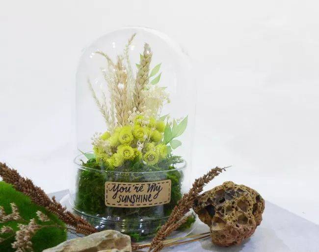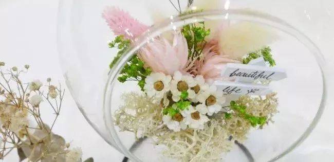 永生花就是永远都不会枯萎的花。隔着玻璃,里面的小小世界永远都是鲜活的。