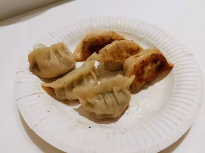 被火焰轻吻过的饺子一个个外酥里嫩。中华小当家中火焰兄弟的煎饺大约也就是这么好吃吧。