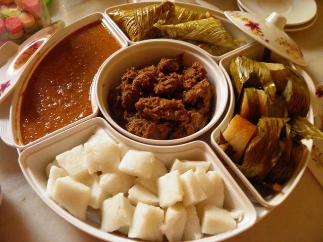 今天,马来家庭也会走亲访友,欢聚在一起共享自家烹制的美味大餐。同华人家庭类似,马来人开斋节的美食也是多种多样,特别是传统的任当牛肉(Redang beef)和咖喱鸡,坡国的小伙伴一定要找机会尝一尝哦~特别棒。