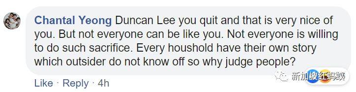 Duncan Lee,你辞掉了工作,你非常有善心。但并非每个人都能像你一样。并非每个人都愿意做出这样的牺牲。家家有本难念的经,你身为外人,凭什么要去评价他人?