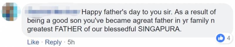 (祝你父亲节快乐李总理,因为你是一个好儿子,你现在成为了家中的好父亲,也是新加坡的好父亲!)