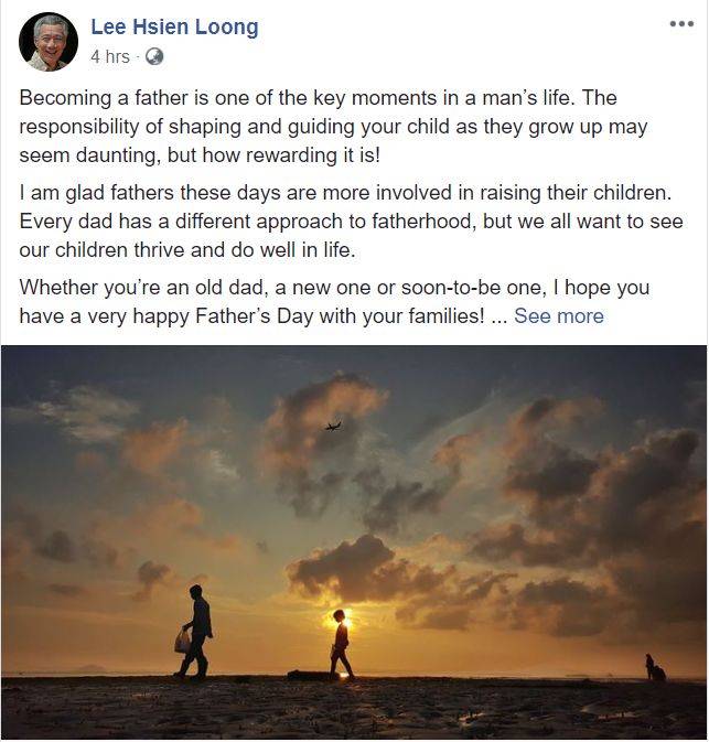 每逢过年过节必发祝福的李显龙总理,祝各位爸爸和准爸爸们父亲节快乐!