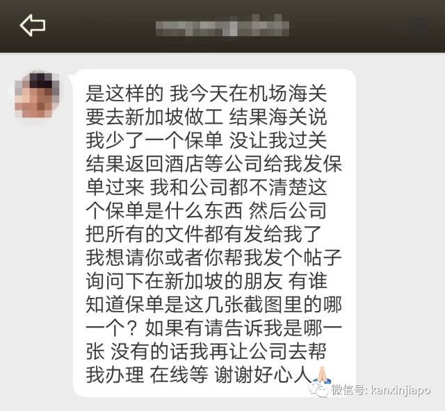简单说就是要来新加坡工作,没让过海关,貌似因为少了一个保单,却说不清楚是什么。心急之下向新加坡眼求助,请大家帮忙看一下,究竟少了什么东西,又怎样才能尽快补足材料,好及时飞到新加坡来。