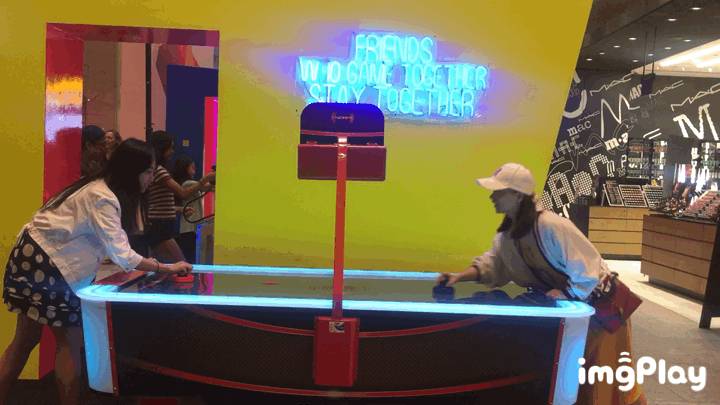 在313每消费20新就可以去服务台免费领取4枚游戏币在霓虹电动乐园玩~