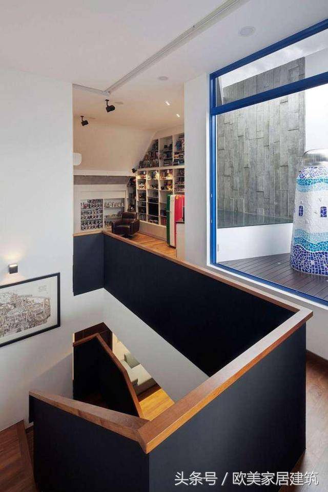 房子的最低层包含起居空间,二楼和三楼设有主卧室,额外的卧室和工作间。带按摩浴缸的顶层,屋顶露台和一个有趣的玩具房间完成了这个非常有创意的住宅。