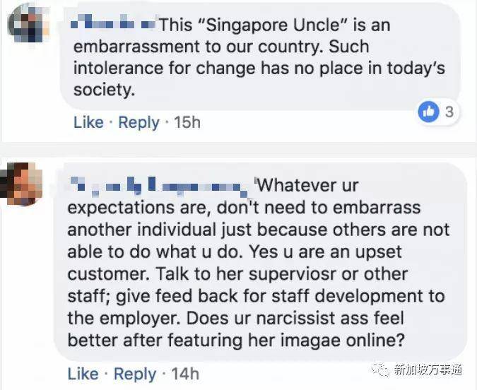 还有人说话更狠,“我希望这个安哥他不要和其他正常的新加坡人交往,因为他会到处恐吓别人。这位女士只是想过一种体面而真实的生活。”
