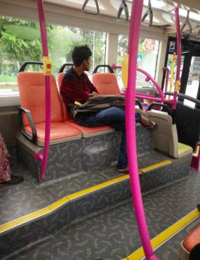广告这个人一上车就东张西望,然后朝一名华裔女生旁边坐去。当时巴士上还有很多空位子,但他偏偏就坐在该女生旁边,而且靠她很近。