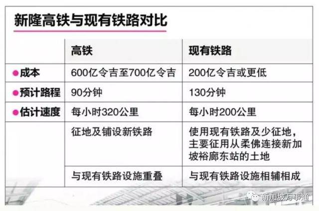 据大马媒体报道,大马元老精英委员会已接获新隆高铁替代方案的建议,将用耗资200亿令吉(约67亿新元)提升现有双轨铁路设施的方案取代新隆高铁。双轨铁路这项方案的建筑成本比原先新隆高铁成本整整节省约500亿令吉。