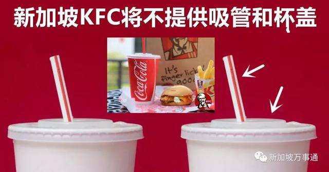 新加坡肯德基近日宣布,为响应无吸管计划,新加坡本地84家肯德基连锁店,将从20日(明天)起停止提供塑胶杯盖与吸管。
