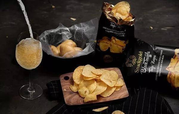 Snackgold 完完全全成功得重新定义了薯片推出的黑松露风味,不仅让人解馋也甚是奢华。选择的材料,从马铃薯到橄榄油都是100%西班牙进口。