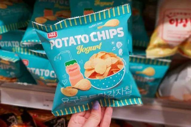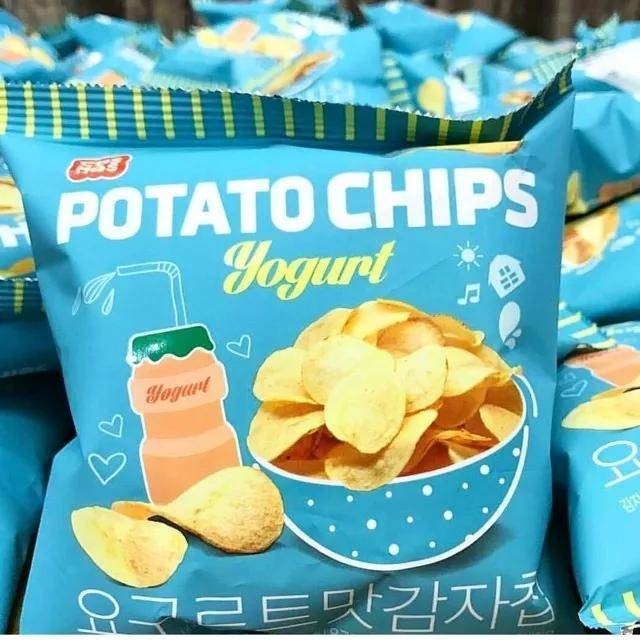 韩国总是能够发明出各种很有意思的零食们。虽然这个薯片名字放的是酸奶味,但其实口感以及味道更像是原味儿的养乐多。