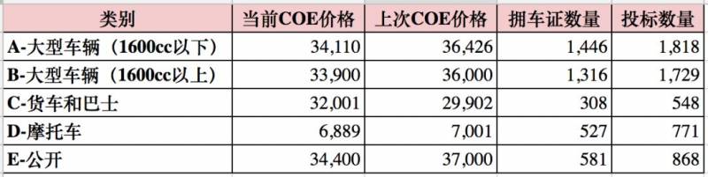 大型车辆(1600cc以上)组别,6月第2次成交价为33,900新币,对比6月第1次成交价调低了2,100新币。