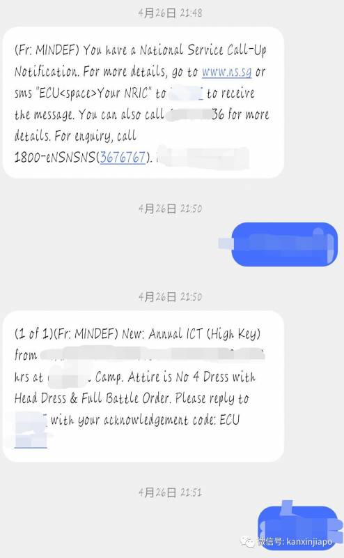 战备军人有义务在国防部网站 (www.ns.sg)更新个人资料,国防部会通过手机简讯或电邮通知回营受训的时间。战备军人这时必须确认收到通知,如果10天后都没有确认,国防部会再邮寄一份回营受训的通知,专有名词“SAF100”。一句话,让你没借口说自己没收到通知。